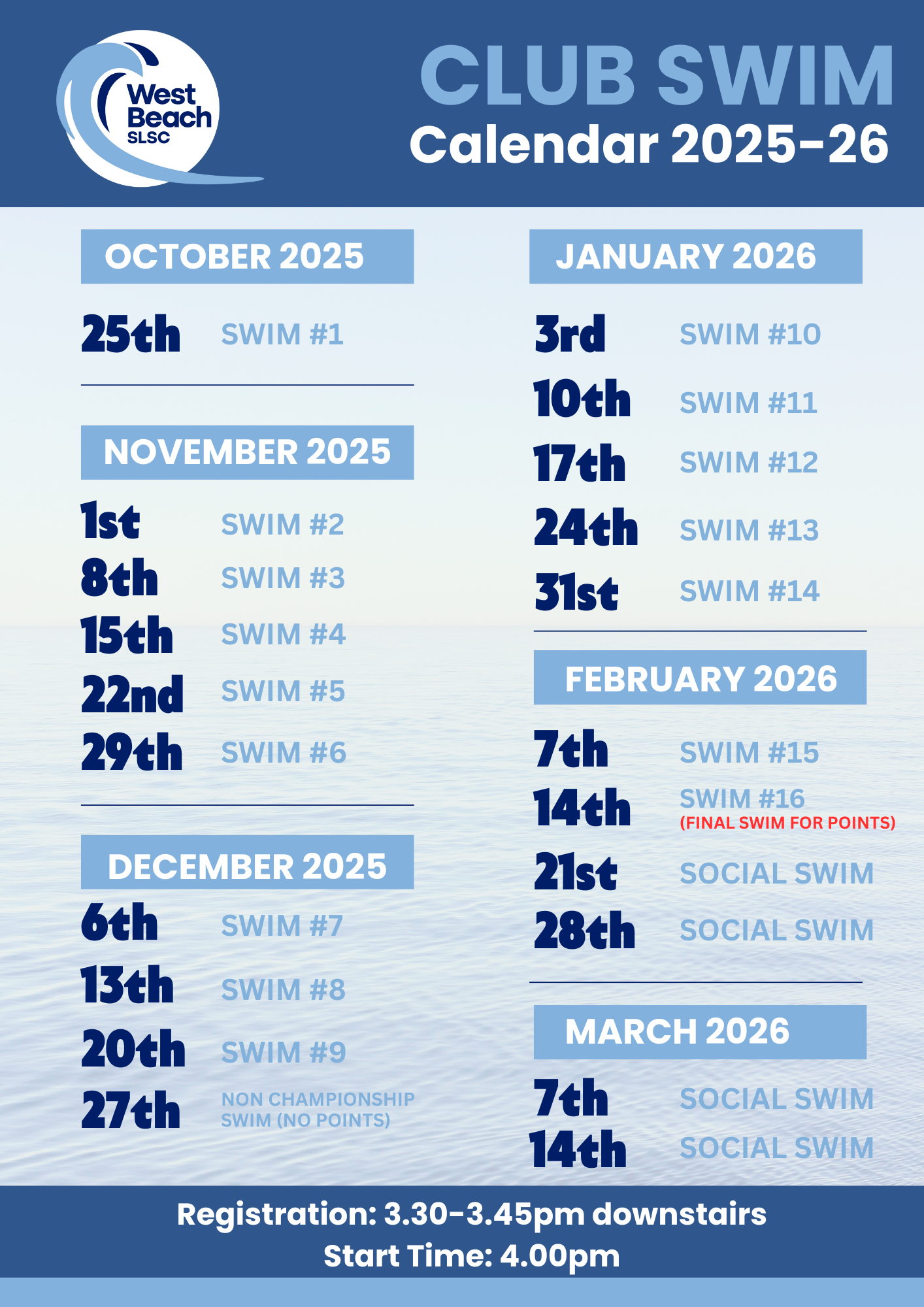Looking for a welcoming way to enjoy the ocean, stay active, and connect with your local surf club? Come down to West Beach for our regular community swim — open to swimmers of all levels.