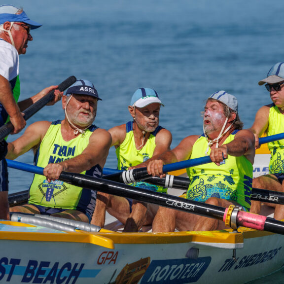 Five-person crews row through the surf, turn at the buoy, and power home. A mix of strength, timing and trust – with plenty of thrills along the way.
