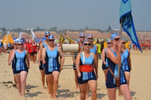 A tradition of pride and precision. Teams march in perfect formation with reel, belt and club colours, honouring the heritage of surf lifesaving.